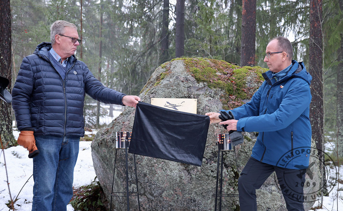 Muistolaatan julkistustilaisuudessa olivat mukana myös Teuvo Laine, Peter Saarikangas ja Lars Saarikangas. Onnettomuuden sattuessa he olivat 23-, 13- ja 14-vuotiaita. Teuvo oli kuullut rytinän onnettomuuden tapahtuessa. Kun radiosta kuului tieto lento-onnettomuudesta niin langat yhdistyivät.