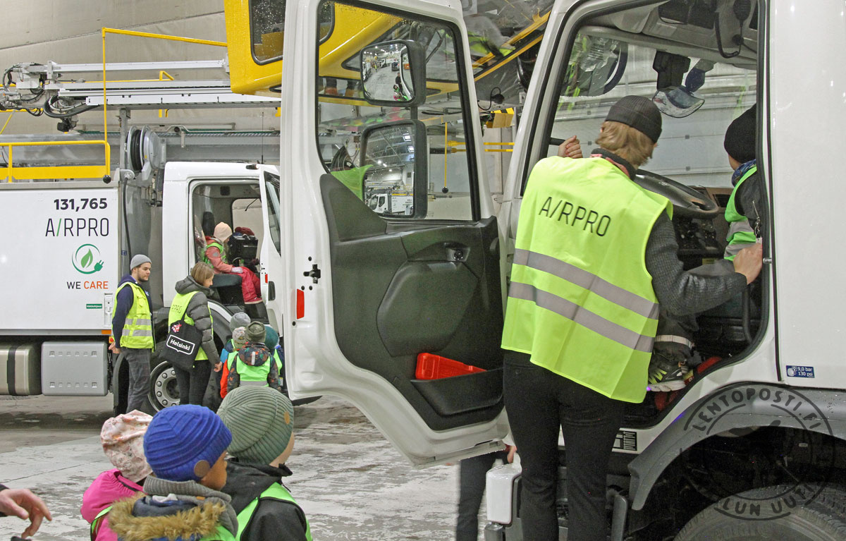 Riemua ja ääntä riitti, kun eskari-ikään ehtineet lapset vierailivat Helsinki-Vantaalla nähden jäänpoistoautot, jättimäisen vesipyssyn, auton venyttelyn ja toimintanäytöksen sekä lentokoneita.