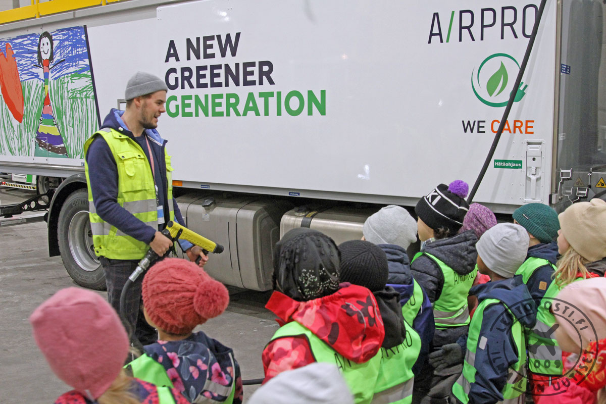 Nyt lasten oikeuksien viikon lähestyessä kaikkiaan 42 eskarilaista eri ryhmistä opettajineen saapui Airpron vieraaksi Helsinki-Vantaan lentoasemalle perjantaina 11. marraskuuta. Innokkaat lapset näkivät ensi kertaa piirroksensa suurennettuina uusien jäänpoistoautojen kyljessä.