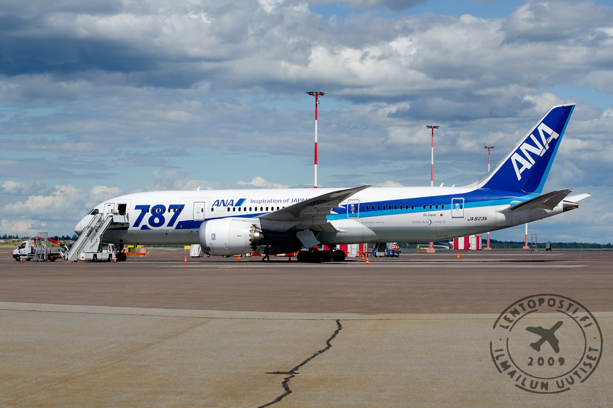 ANA:n Boeing 787-8 Dreamliner (JA823A) laskeutui Helsinki-Vantaalle varhain aamuyöllä juhannuspäivänä lentoseman ja Keski-Uudenmaan pelastuslaitoksen yksiköiden varmistaessa tilannetta. Koneen transponderiin oli asetettu hätäkoodi.