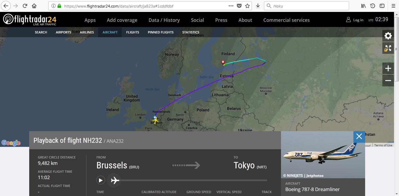 NH323 kääntyi takaisin kohti Helsinki-Vantaata ollessaan jo Venäjän ilmatilassa. Ohjaajat laskeutuivat nopeasti reittipinnalta kolmen kilometrin korkeuteen. Päivitys 16.30: Lisätty uudet kuvat koneesta ja koneen reitistä.