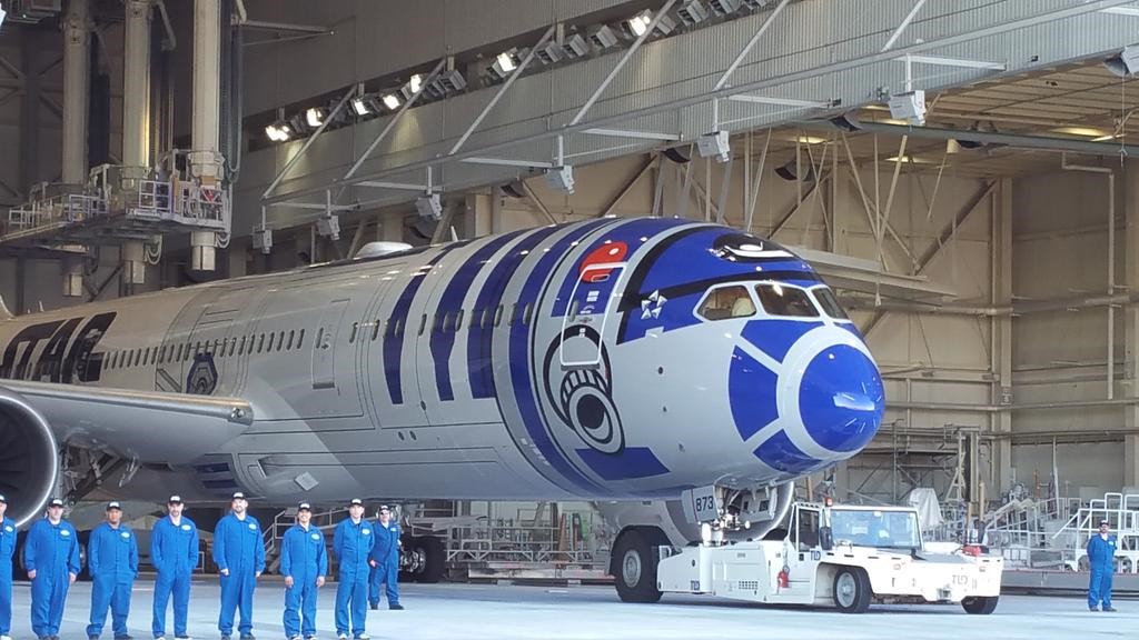ANA:n uusi Boeing 787-9 R2-D2 Dreamliner esiteltiin roll out -tilaisuudessa Boeingin Seattlen tehtailla. Paikalla oli asiaan kuuluvasti Tähtien sota -elokuvista tuttuja hahmoja mukaanlukien tietenkin R2-D2. Turvallisuudesta vastasivat valkoista haarniskaa kantavat Stormtrooperit.