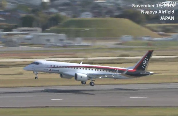Mitsubishi MRJ90 -koelentokone nousi ensimmäiselle noin puolentoista tunnin mittaiselle lennolleen Nagoyasta. Koelennon aikana MRJ:llä lennettiin laskutelineet ja laipat ulkona. Valmistajan mukaan lento onnistui suunnitellusti. "Koneen suorityskyk oli paljon odotettu parempi. Lento oli erittäin miellyttävä", kommentoi ensimmäisen koelennon kapteeni Yasumura. Koelentoja tehdään myös Yhdysvalloissa vuoden 2016 toisen neljänneksen alun jälkeen. MRJ:n koelennot operoidaan Washingtonin osavaltiossa Moses Laken Grant County Internationali lentokentällä.