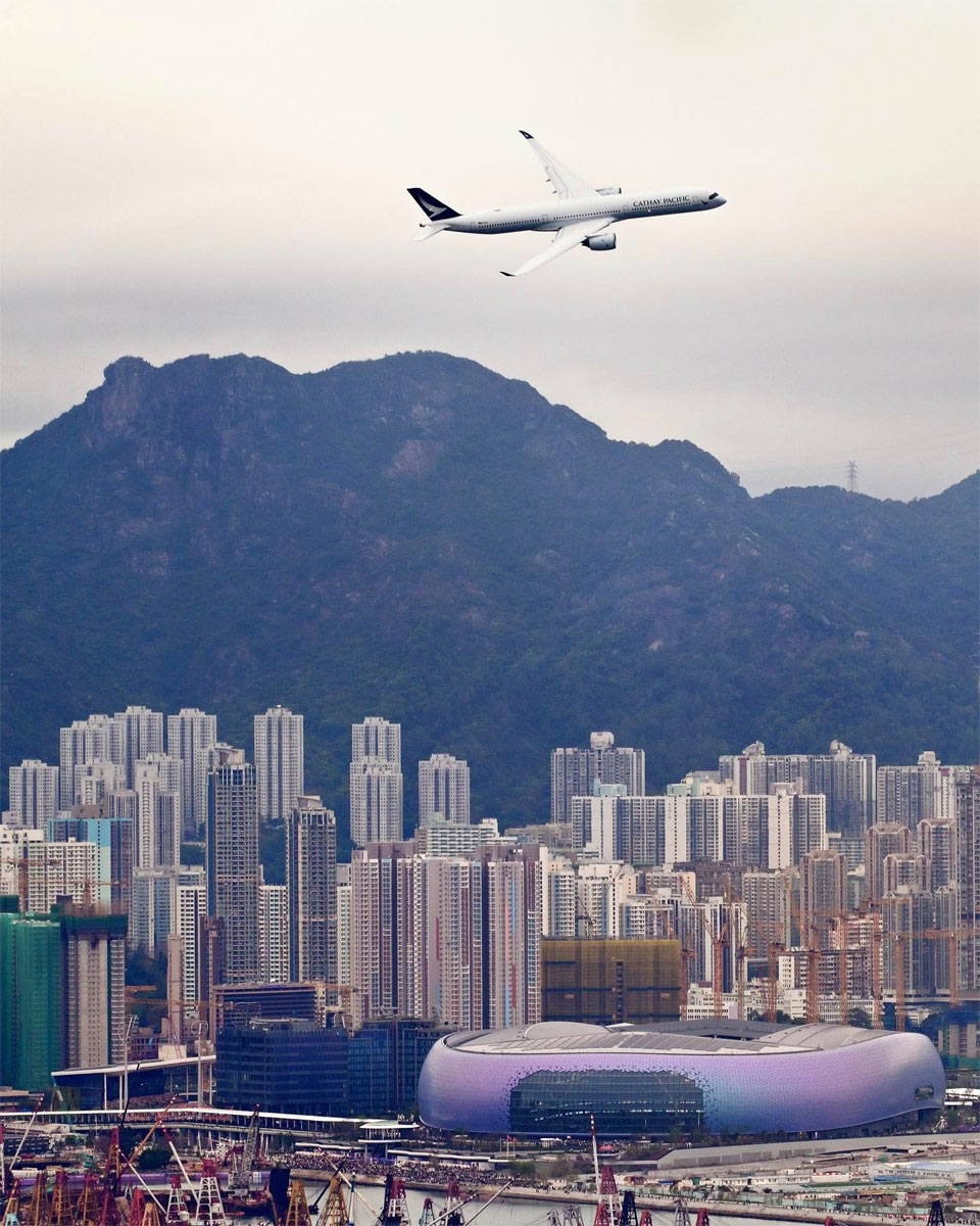 Cathay Pacific lensi sunnuntaina 30. maaliskuuta 2025 erikoislennon Airbus A350-1000 -laajarunkokoneella Hongkongin yllä kaupungin entisen lentoaseman Kai Takin avaamisen 100-vuotisjuhlan kunniaksi. Legendaarinen ja erikoisesta checkerboard-lähestymisestä tunnettu Kai Tak suljettiin vuonna 1998.
