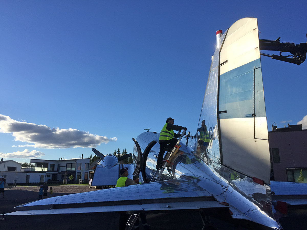 Airveteran Oy:n nykyisin omistama Douglas DC-3 (Douglas Commercial 3, sotilasversiona C-47A) hankittiin Aeron (nykyisin Finnair) käyttöön vuonna 1947 Yhdysvaltojen sodan aikaisen kaluston ylijäämävarastoista.