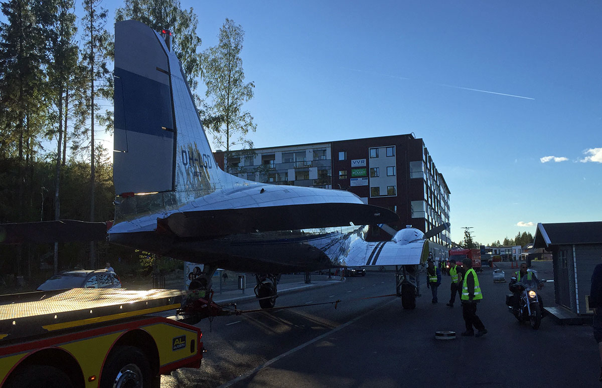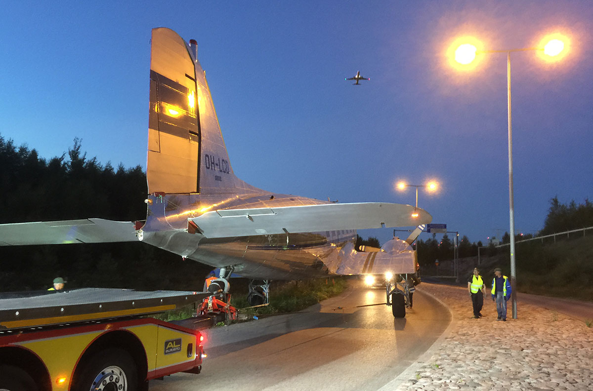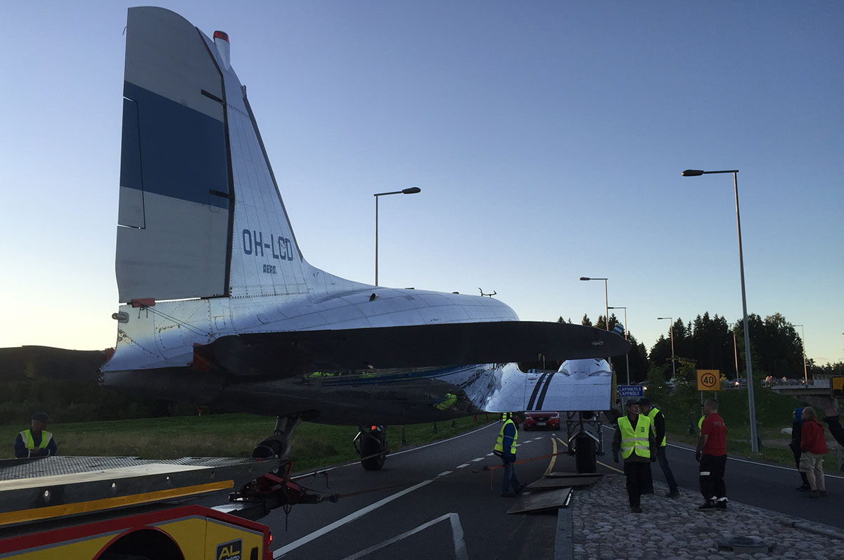 Siirto oli valmisteltu huolella ja nosto alas jalustalta oli tehty jo aiemmin. Koneen siirto alkoi torstaina kello 19.30. Reitti kulki Katriinantietä lentoaseman laitaan ja siitä edelleen Helsinki-Vantaan lentokentän halki pelastusaseman sivuitse Suomen Ilmailumuseolla. Perille saavuttiin ennakkoarvion mukaisesta ja kannuspyörä laskeutui Karhumäentie 12:sta pihaan perjantaina aamuyöllä kello 02.00.