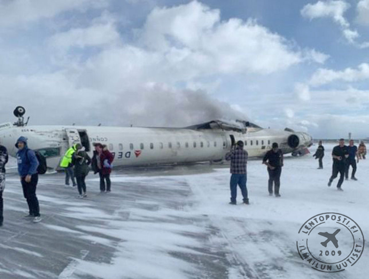 Videota tapahtumapaikalta: FOX Business: Plane Crashes, Flips Upside Down at Toronto Pearson Airport Päivitys kello 23.00: Korjattu FAA:n vahvistama henkilömäärä.