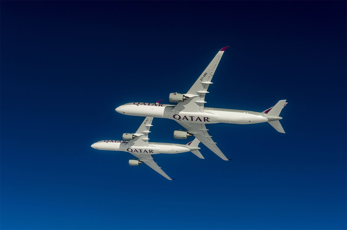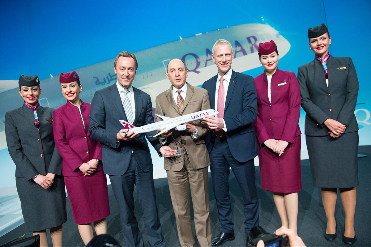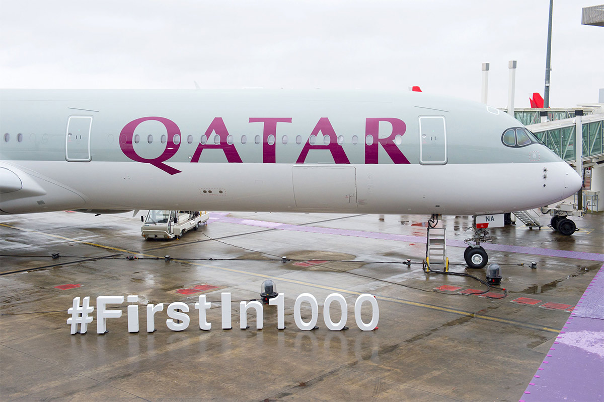 Qatar Airways on Airbus A350 XWB -ohjelman suurin asiakas kaikkiaan 76 tilatulla koneella. Vastaanotettu ensimmäinen A350-1000 aloitti kaikkiaan 37 suuremman version toimitukset qatarilaisyhtiölle. Se vastaanotti myös ensimmäisen A350-900 -koneen vuonna 2014. Yhtiön laivastossa on jo 22 A350 XWB -konetta. Vuoden 2018 aikana Qatar Airways vastaanottaa kuusi A350-1000 -konetta. Ensimmäisessä luovutetussa A350-1000 -koneessa esiteltiin myös Qatar Airwaysin Qsu Qatar Airwaysin A350-1000 -koneessa on 327 matkustajapaikkaa, kun yhtiön pienemmmässä A350-900 -koneessa paikkoja on 283. Uudessa koneessa on 46 Qsuite-istuinta ja 281 turistiluokan istuinta 3-3-3 -konfiguraatiossa. Konetoimituksen oli alunperin määrä tapahtua jo vuoden 2017 loppuun mennessä. Viiveet johtuivat koneen viimeistelystä ja erityisesti business-luokan Qsuite-ratkaisun asentamisesta.
