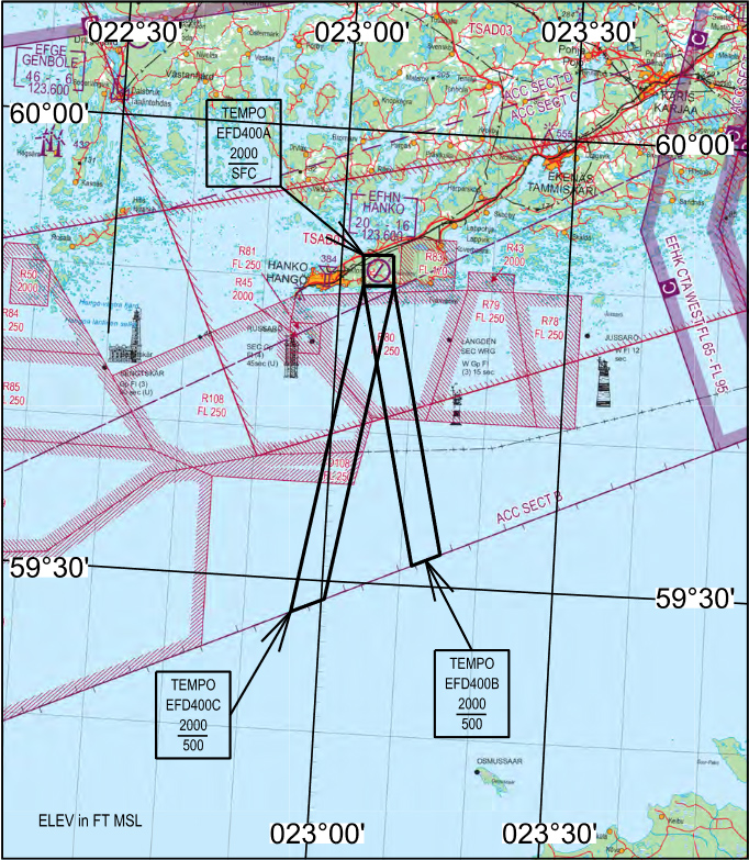 UAV laukaistaan ilmaan Hangon Itäsatamasta, josta se ohjataan alle 150 metrin korkeudella varattuun ilmatilakäytävään. Siellä korkeus voidaan nostaa jopa 600 metriin. Käyttöön on Suomen puolelta haettu lupa kahdelle ilmatilakäytävälle riippuen puolustuvoimien aluvarauksista. Lennolla käytetään käytävää B (kuva yäläpuolella). Ilmatilavarauskäytävissä korkeus on rajoitettu 150 metrin ja 600 metrin välille. Varaus jatkuu myös Viron ilmatilassa.