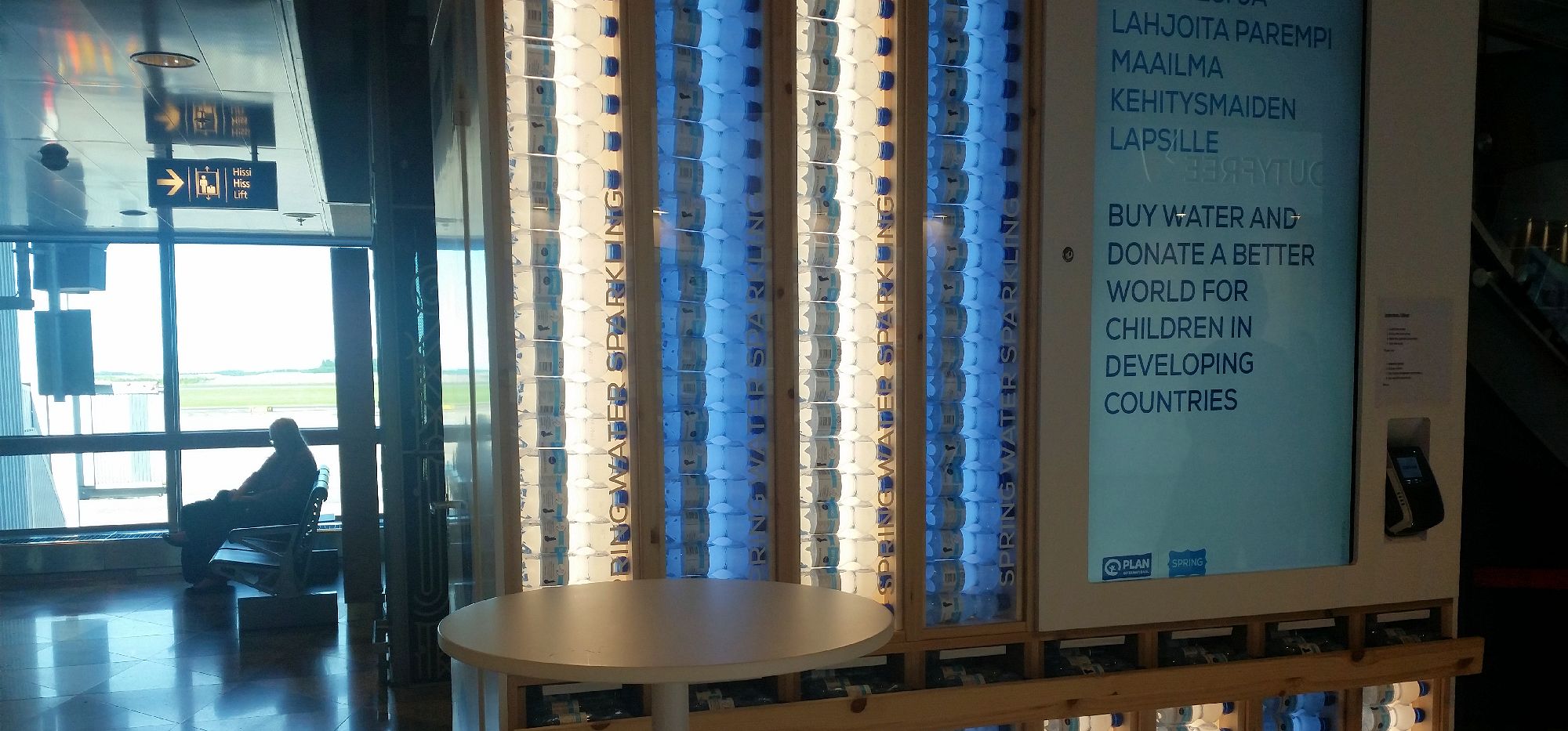 Finavia aloitti euron veden tarjoamisen Helsinki-Vantaan lentoasemalla kesä-heinäkuun vaihteessa. Euron vesipulloja voi ostaa kahdesta pisteestä, jotka sijaitsevat lähtöporteilla 13 ja 26. Matkustajat voivat halutessaan maksaa pullosta myös kaksi euroa, jolloin toinen euro ohjataan kehitysmaiden lapsille. Tällä hetkellä euron vesipullopisteiltä saa hiilihapotettua vettä, mutta myöhemmin syksyllä saatavilla on myös hiilihapotonta pullovettä. Hankkeessa ovat mukana vesitoimittajana kotimainen perheyritys FinnSpring ja Plan, joka on yksi maailman suurimmista ja vanhimmista lastenoikeusjärjestöistä. Planin kautta annettavat lahjoitukset ohjataan eteenpäin. Euron hintaisten vesipullojen lisäksi Finavia on parantanut myös ilmaisen veden jakelua lentoasemalla. Matkustajat voivat täyttää omaan tyhjään pulloonsa ilmaista vettä, kun vilkkaisiin auloihin lisättiin automaattisia juomavesihanoja kaikkiaan 12 kappaletta. Aulojen lisäksi uudenlaiset hanat on asennettu kuuteen miesten- ja kuuteen naistenhuoneeseen lähellä portteja 12–13, 21, 26, 29 ja 32 "Euron hintaista vesipulloa on toistaiseksi tarjolla vain Helsinki-Vantaalla. Selvitämme kuitenkin voimmeko laajentaa euron vettä myös verkoston lentoasemille", kertoo Finavian viestinnän Kirsi Luhta Lentoposti.fi:lle. Lue myös: