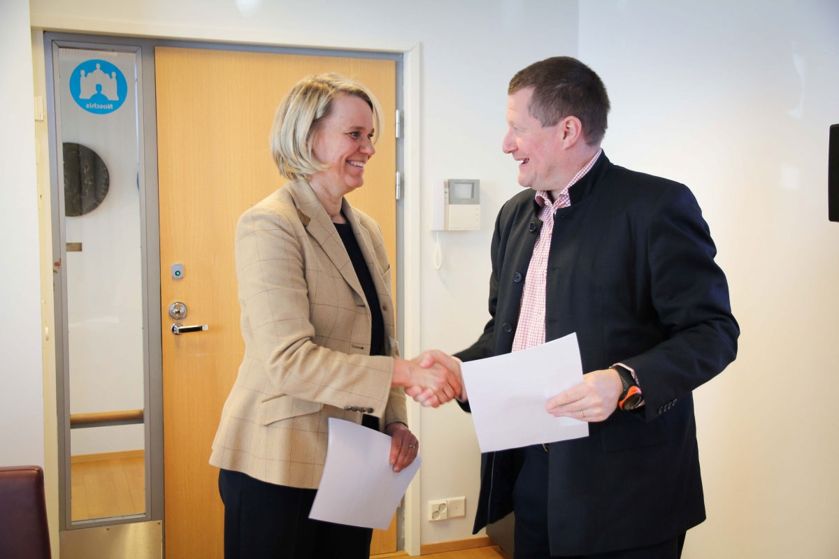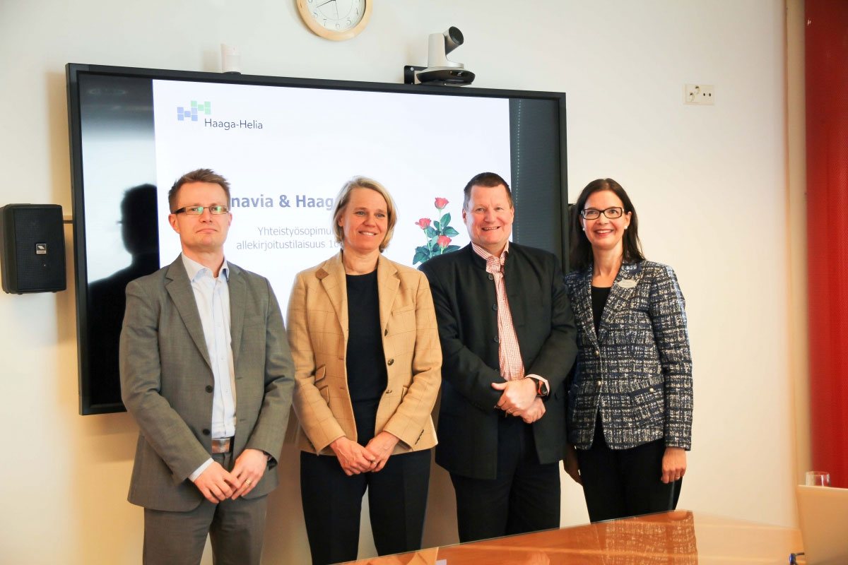 Finavia on valinnut Haaga-Heliasta kummiluokakseen matkailun liikkeenjohdon koulutusohjelman opiskelijat. Finavian HR Partner Sami Laine ja koulutusohjelman johtaja Minna Halmetoja ovat silmin nähden tyytyväisiä sopimuksen synnystä. ”Kummiluokkatoiminta tarjoaa Finavialle oppilaitosyhteistyöhön kaivatun jatkumon, jossa saman toimijan kanssa pystytään rakentamaan vahvempaa yhteistyötä ”, Laine hehkuttaa. Halmetoja on erityisen kiitollinen opiskelijoiden puolesta – onhan Haaga-Helian missio juuri avata ovet työelämään.