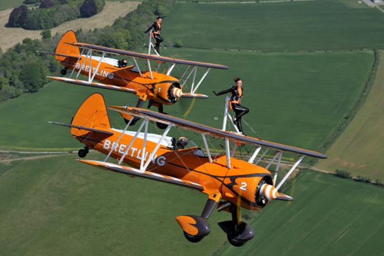 Ryhmä on 27 vuoden aikana esiintynyt noin 2 500 ilmailutapahtumassa eri puolilla maailmaa. Kotimaassaan Englannissa Breitling Wingwalkers -ryhmän näytöksissä käy noin 6 miljoonaan brittiä vuosittain. Siipikävelijät sidotaan näyttävän näköisen Boeing Stearman -kaksitasolentokoneen siipiin. Koneen ollessa taivaalla siipikävelijät tekevät henkeä salpaavia akrobaattitemppuja koneen kivutessa hurjiin korkeuksiin, syöksyessä kohti maan pintaa ja lentäessä välillä jopa ylösalaisin. Lentokoneen nopeus on parhaimmillaan 250 kilometriin tunnissa.