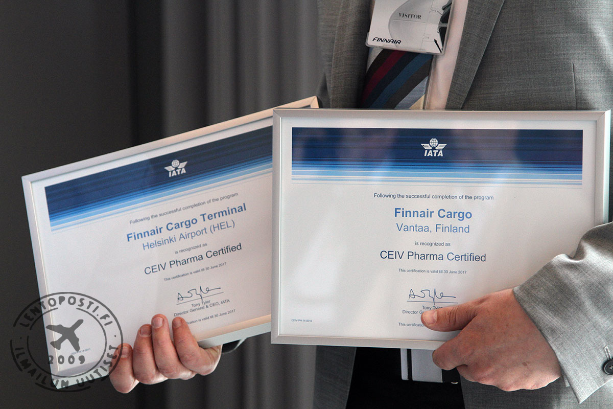 IATA:n edustajat luovuttivat sertifikaatit Finnairin kaupalliselle johtajalle Juha Järviselle Finnairin HOTT-pääkonttorissa Vantaalla. ”Haluamme olla lääketeollisuuden tuotteiden kuljetuksessa kehityksen kärjessä ja tarjota asiakkaillemme ensiluokkaista palvelua. Meille on kunnia olla maailman ensimmäinen IATA CEIV Pharma -sertifioitu lentoyhtiö”, sanoo Finnairin kaupallinen johtaja Juha Järvinen.