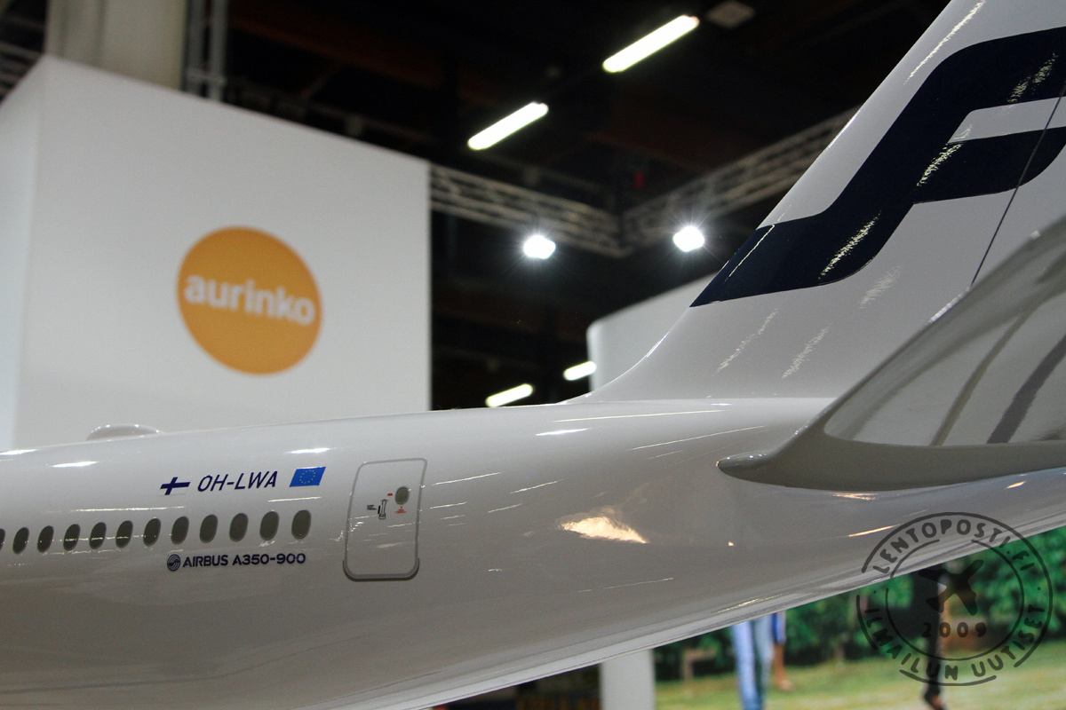 Yhtiön tulevan kaukoliikennelaivaston rungoksi nouseva Airbus A350-900 -kone on muutenkin suuressa roolissa osastolla. Matkamessuilla julkistettiin tulevan A350-laivaston rekisteritunnukset suuren pienoismallin kyljessä.