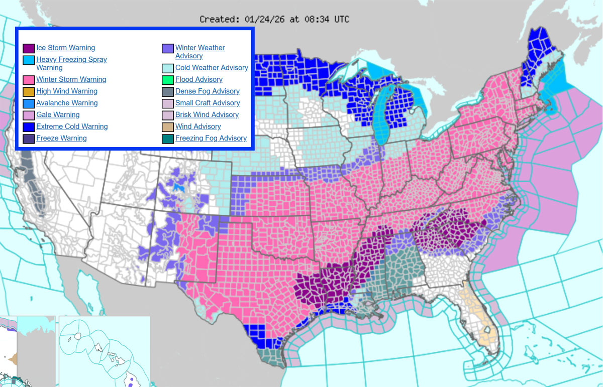 talvimyrsky_USA_1_NOAATalvimyrsky sotkee lentoliikennettä Yhdysvalloissa Texasista New Yorkiin. Haastavat sääolosuhteet rajoittavat lentoliikennettä ja hidastavat kenttätoimintoja erityisesti 24. ja 25. tammikuuta 2026. Finnair on joutunt perumaan lentonsa Dallasiin ja New Yorkiin lauantailta 24. tammikuuta.