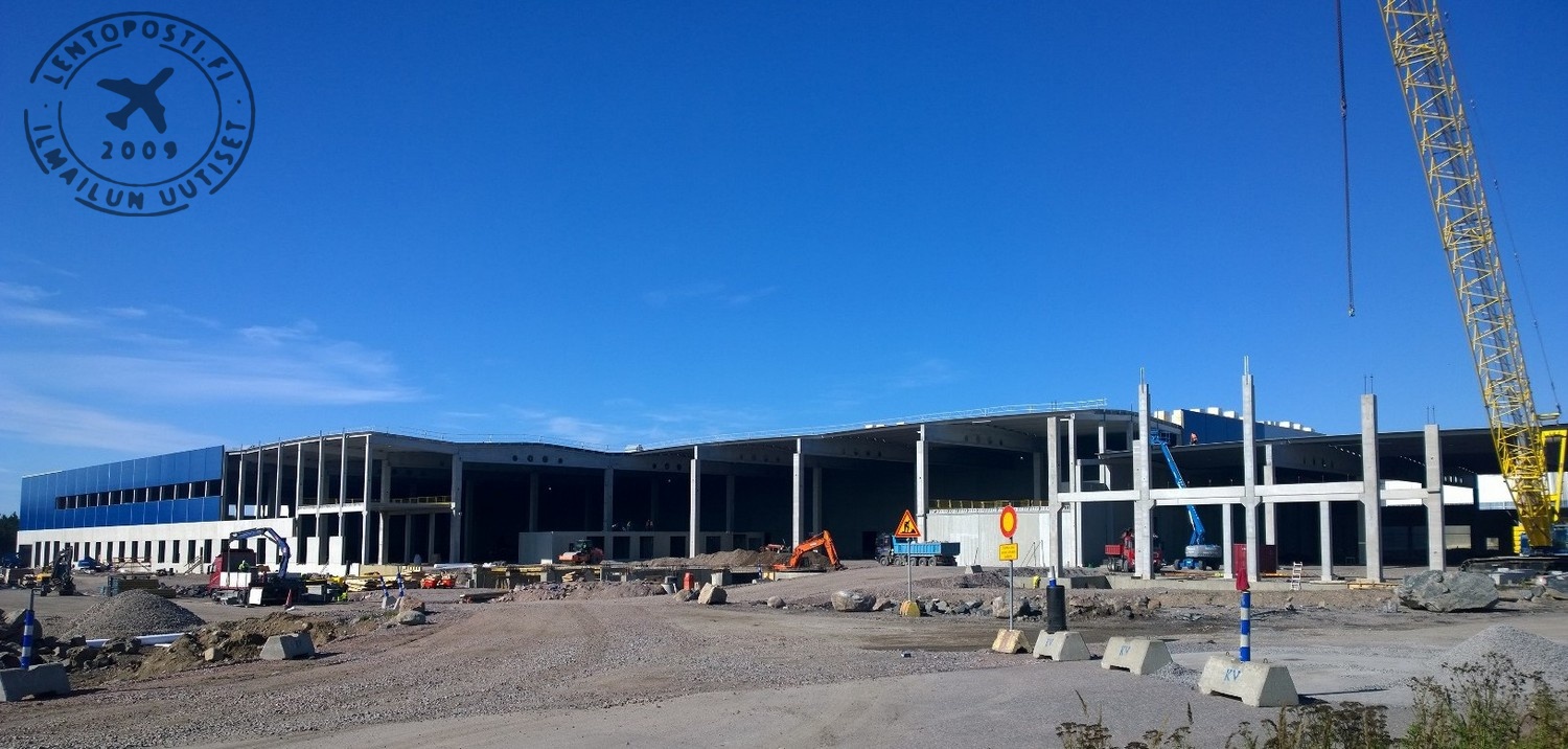 Parhaillaan Finnair Cargolle rakennetaan uutta Cool Nordic Cargo-hubia Helsinki-Vantaan lentoasemalle. Syyskuun 10 .päivä otetussa kuvassa yllä näkyy, miten nopeasti rakennus on noussut kesän aikana. Uuden rahtiterminaalin rahdinkäsittelykapasiteetti on 450 000 tonnia. Kapasiteettia voidaan laajentaa vielä 100 000 tonnilla. (uudesta terminaalista voi lukea tarkemmin aiemmista uutisistamme). Lue myös: