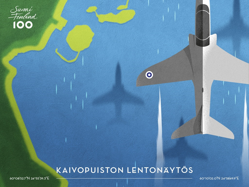 Maalle, merelle ja ilmaan levittäytyvä Kaivopuiston lentonäytös noussee Suomi 100-juhlavuoden suurimmaksi yksittäiseksi tapahtumaksi. Paikalle odotetaan jopa yli 100 000 katsojaa. Näytöksessä esitellään kotimaisen ilmailun historiaa klassikoista nykypäivään ja tulevaisuuteen. Lähistöltä Katajanokalta lennettiin Aero Oy:n (nykyisin: Finnair) ensimmäinen kaupallinen lento Tallinnaan maaliskuussa 1924. Kaivopuiston edustalla Suomenlinnassa puolestaan aloitti jo vuonna 1921 toimintansa aluksi ilmavoimien alaisuudessa toiminut Valtion Lentokonetehdas. Kaivopuiston lentonäytöksen tapahtumakeskus eli maanäyttelyalue on Kylpylän aukiolla, aivan Cafe Ursulan välittömässä läheisyydessä. Maanäyttelyssä on runsaasti ilmailuhenkistä nähtävää koko perheelle ja se on avoinna yleisölle koko tapahtumapäivän. Päivitys 14.3 kello 17.05: Lisätty Jari Paajasen haastatteluosuus jossa ohilennon suorittamista tarkennetaan. Lue myös: