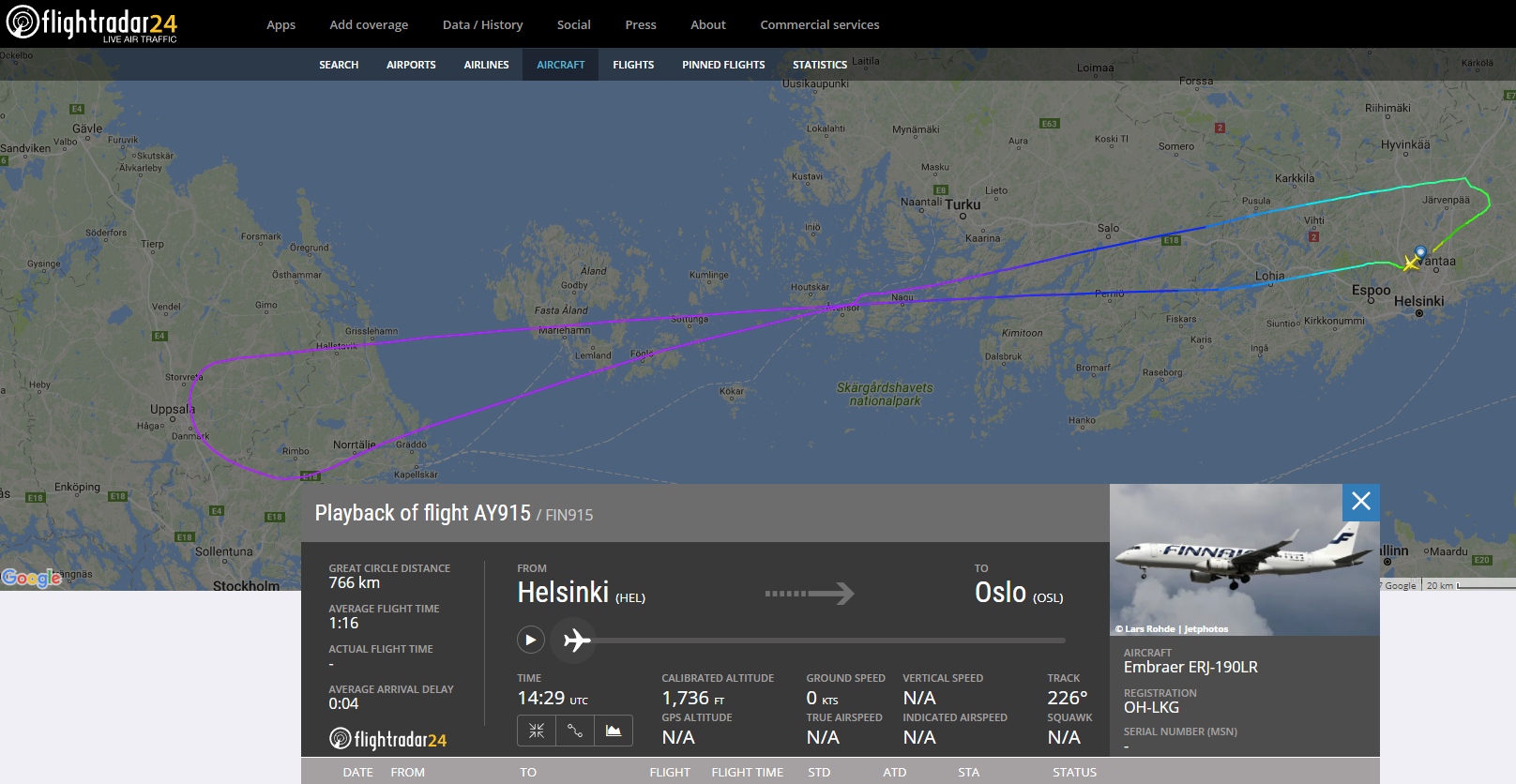 Lennon operoi Finnairin kokonaan omistama tytäryhtiö Norra Embraer 190 -matkustajakoneella (OH-LKE). Koneessa oli sata matkustajaa ja neljän hengen miehistö. Ilmeisesti kukaan ei ole loukkaantunut.