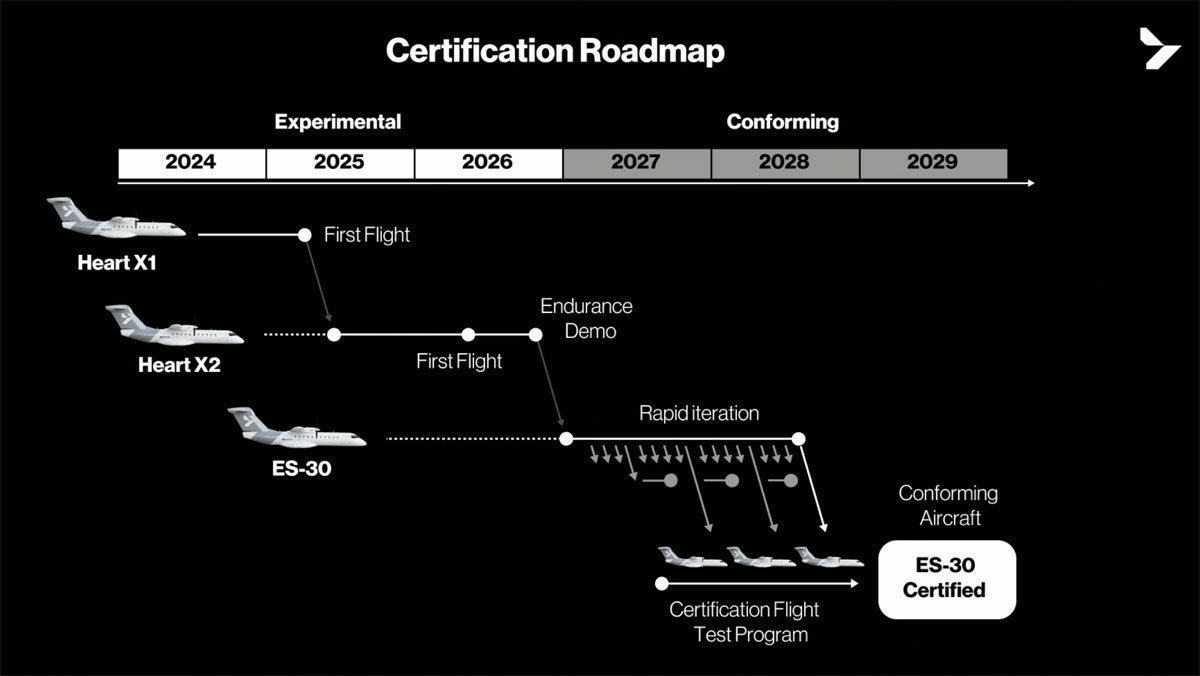 Hankkeen tulevissa vaiheissa kohti ES-30 -sähköhybridikonetta rakennetaan ensin esituotantomalli Heart X2, joka on myös sähköhybrikone eikä pelkästään sähkölentokone. HX-2:n avulla kehitetään suunnittelua ja tuotantoa hyödyntäen oppeja, joita on saatu Heart X1 -koneen kehittämisestä.