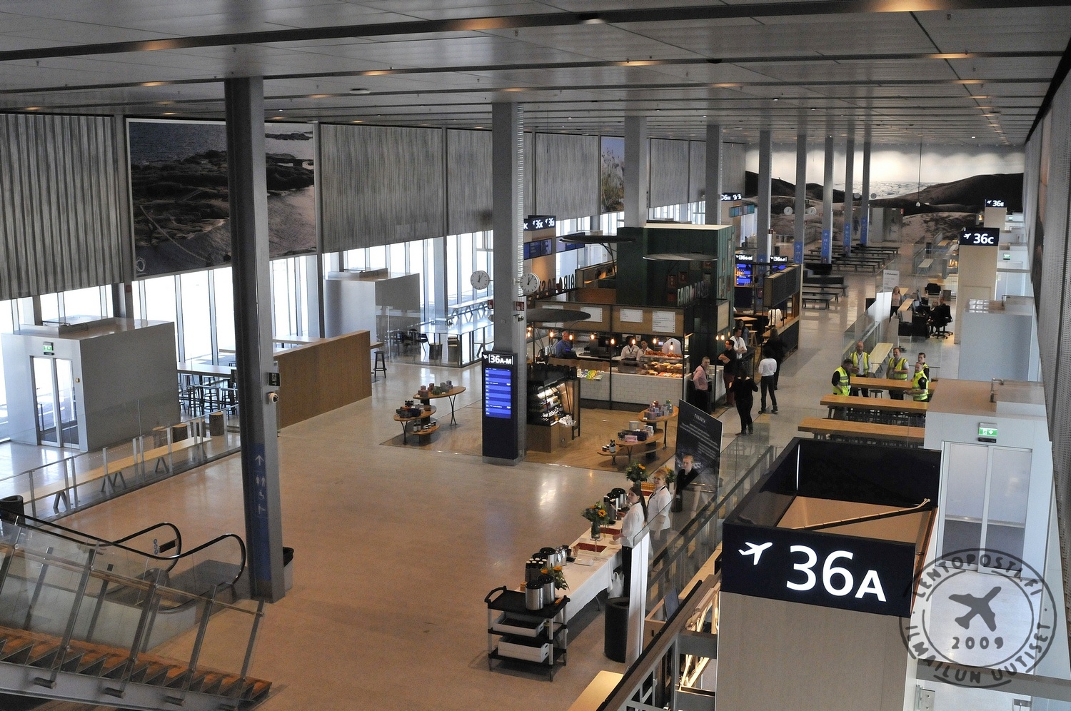 Nyt avattujen odotustilojen suunnittelussa on Finavian mukaan panostettu viihtyisyyteen ja rentoon tunnelmaan. Alueelle haluttiin tuoda pala suomalaista luontoa ja sen kaunista saaristoa. Merihenkeä luodaan runsaalla puun käytöllä ja tuomalla sisustukseen pohjoisten kallioiden karuus (kuva alla).