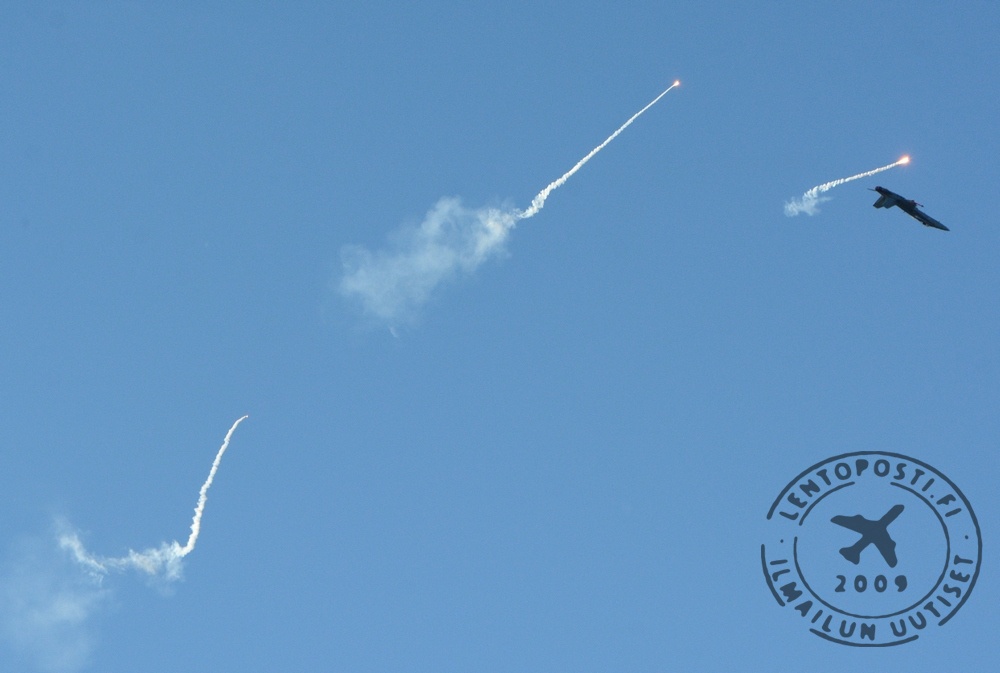 Rocketman joutuikin tyytymään normaaliin siipihaalarihyppyyn ja sen jälkeiseen laskeutumiseen laskuvarjon varassa. Näytöksen toisen jakson yllättäjä oli AirBanditsin Jakovlev Jak-52 -pari. Kookkaat koneet, runsaat savut ja rouhea äänimaailma yhdistettynä tiukkaan puljaan tarjosivat mukavan esityksen.