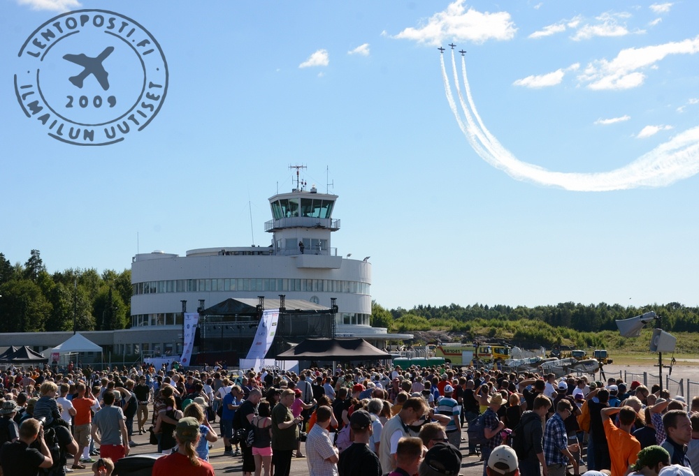 Kuvassa oikealla kapteeni Uggeldahl laskeutuu Helsinki-Vantaan kiitotielle 04L Malmin esityslennon jälkeen. Hornet oli lentonäytöksen viimeinen esiintyjä. Sen jälkeen käytännössä kaikki paikalla olleet katsojat alkoivat vaeltaa kohti ulosmenoväylää. Seurauksena Malmin kentän lähikadut tukkeutuivatkin pahasti.