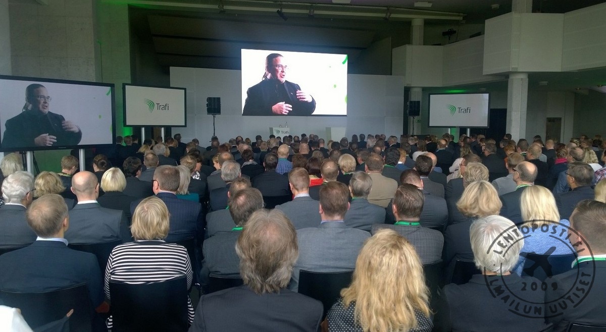 Jo vuotuiseksi perinteeksi muodostuneeseen seminaariin osallistui yli neljäsataa vaikuttajaa suomalaisen liikennekentän eri toimijoista. Istuinpaikkoja Finlandia-talon lämpiöön oli varattu 470 ja lähes kaikki täyttyivät. Seminaariyleisö kuuli videolta aiemmin tallennettuja eri puolueiden kansanedustajien näkemyksiä maamme liikenteen tilasta (otsikkokuvassa Jyrki Kasvin osuus, klikkaa suuremmaksi). Paikalla kävi oman puheenvuoronsa esittämässä myös liikenne- ja viestintäministeri Anne Berner. Ohjelman vetäjänä toimi Arto Nyberg. Tilaisuudesta tehtiin monikameratekniikalla tallenne, joka myöhemmin on tulossa myös nettiin kaikkien nähtäväksi. Seminaaria kommentoitiin Twitterissä tunnuksella #Trafi2015. Ilmailuun liittyvien yritysten ja yhteisöjen edustajia oli Finlandia-talolla melkoinen joukko. Tuttuja kasvoja tuli vastaan Trafin oman ilmailuväen ohella esimerkiksi Finaviasta, Patria Pilot Trainingista, Suomen Ilmailuliitosta ja lukuisista ilmailualan yrityksistä. Väenpaljoudessa moni jäi varmasti huomaamattakin. Seminaarin avasi liikenteenturvallisuusvirasto Trafin pääjohtaja Kari Wihlman. Hän kertoi, että liikennejärjestelmän monimuotoisuuteen mahtuu sekä myönteisiä että kielteisiä ilmiöitä.