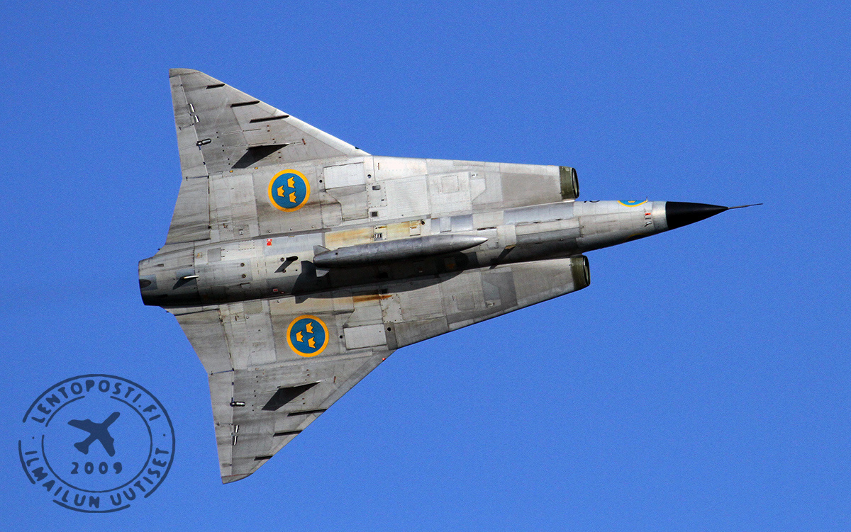 Seuraavana oli vuorossa toinen Ilmavoimat veteraani, kaksoisdeltasiipinen Saab 35 Draken, Ilmavoimien entinen konetyyppi sekin. Ruotsista saapunut kaksipaikkainen hävittäjä näytti, että se kykenee nykykoneiden rinnalla näyttävään ohjelmaan. Kolmantena Super Hornetin ja Eurofighterin ohella HX-hankkessa Hornetien korvaajana ehdolla olevana koneena nähtiin Saab JAS 39 Gripen. Esitys alkoi kolmen koneen muodostelmana, josta soolokone lopuksi irtosi demoaan varten.