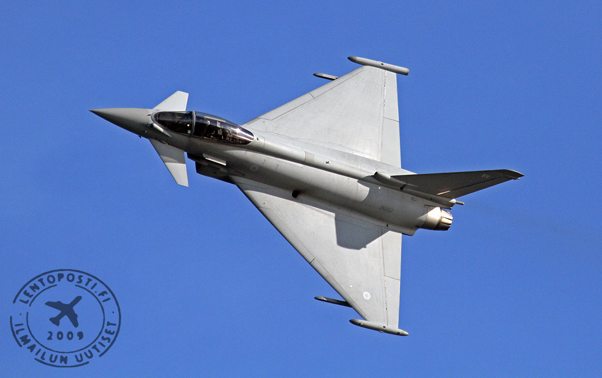 Englantilaisen BAE Systemsin HX-hankkeessa edustama Eurofighter Typhoon oli illan seuraava esiintyjä. Rajua tehoaan esitellyt canard-etusiivellä varustettu hävittäjä liikehti tiukasti ja sai yleisön ensimmäistä kertaa ottamaan korvatulpat ja kuulosuojaimet käyttöön.