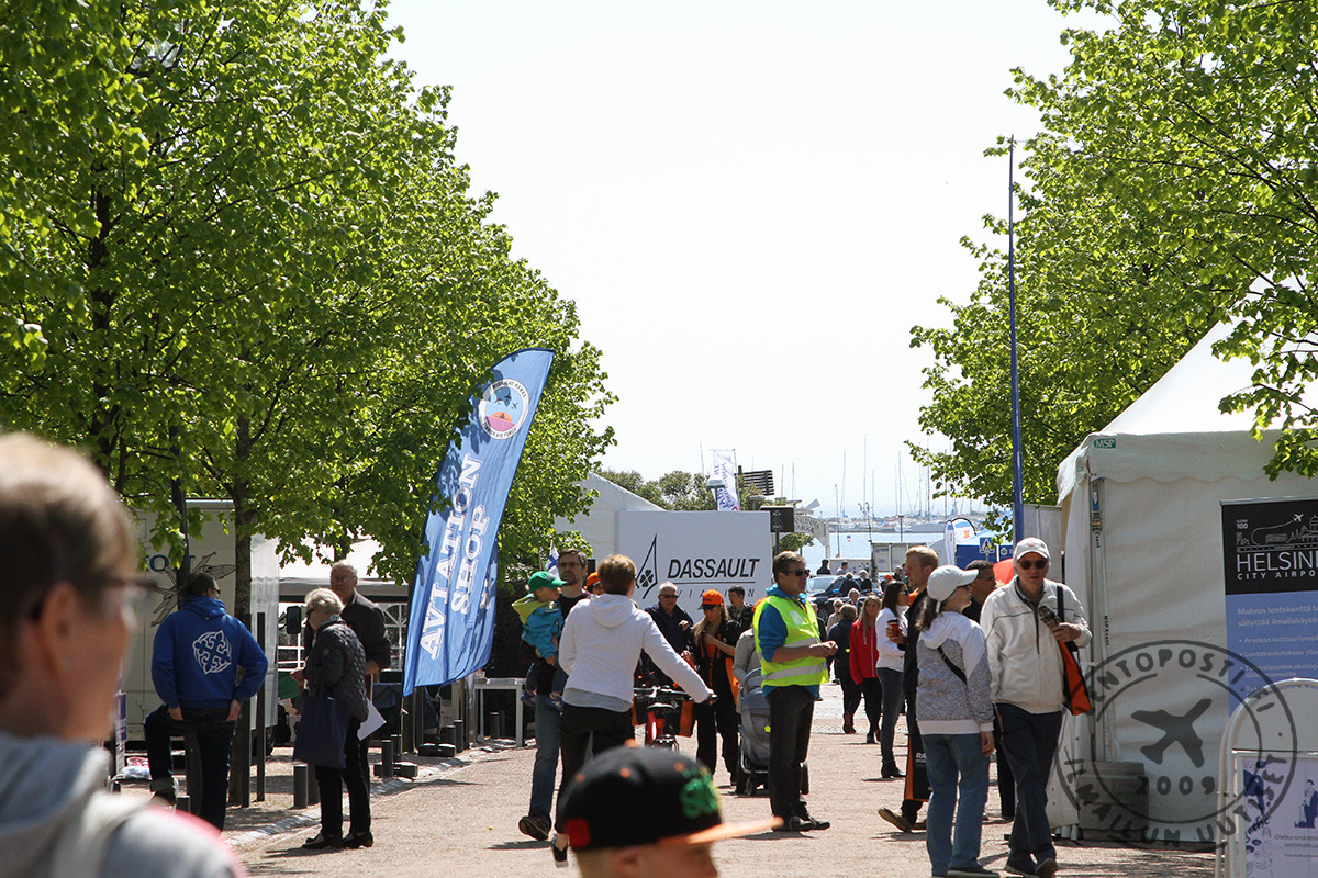 Yleisö pääsi vierailemaan myös BAE Systemsin 1:1-kokoisessa Eurofighter Typhoon -mallissa. Sen ohjaamo on suoraan oikeasta koneesta, joten kokemus oli varsin aito. Vierailijajono olikin pitkä ja selfieitä otettiin runsaasti. Viime vuoden Rissalan näytöksen tavoin Rafale-hävittäjää markkinoiva Dassault jakoi nytkin 20 000 oranssia lippalakkia lentonäytösyleisölle. Myös Boeing ja Lockheed Martin turvautuivat samaan keinoon. Vaikka lentonäytöksen pääpaikka VIP-alueineen oli Kaivopuiston eteläkärjessä, katsojia oli kerääntynyt kaikkialle Helsingin rannoille. Esimerkiksi Hernesaari, Suomenlinna ja Katajanokka tarjosivat loistavat näkymät koneiden suorituksiin. Olipa katsojia myös Eteläsatamassa ja Suurkirkon portailla.