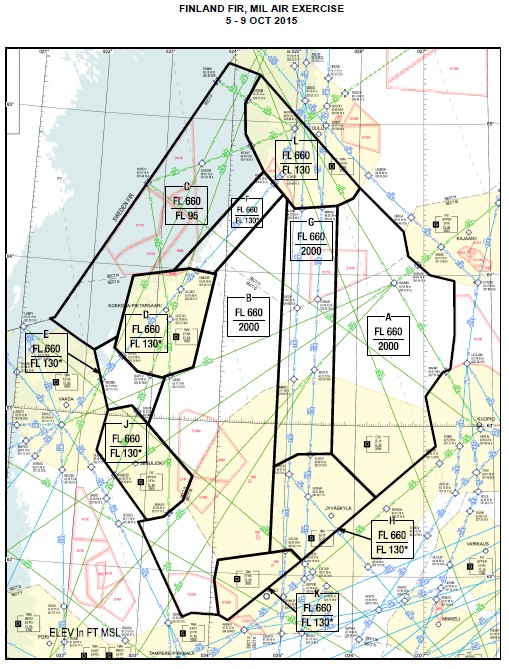 Harjoitus saattaa aiheuttaa viiveitä muulle lentoliikenteelle erityisesti Tampere-Pirkkalan ja Kuopion lentokentillä. Muut mahdolliset ATS-reittirajoitukset julkaistaan myöhemmin. Harjoitustoimintaa on myös oheisen kartan alueiden ulkopuolisessa valvomattomassa ilmatilassa.