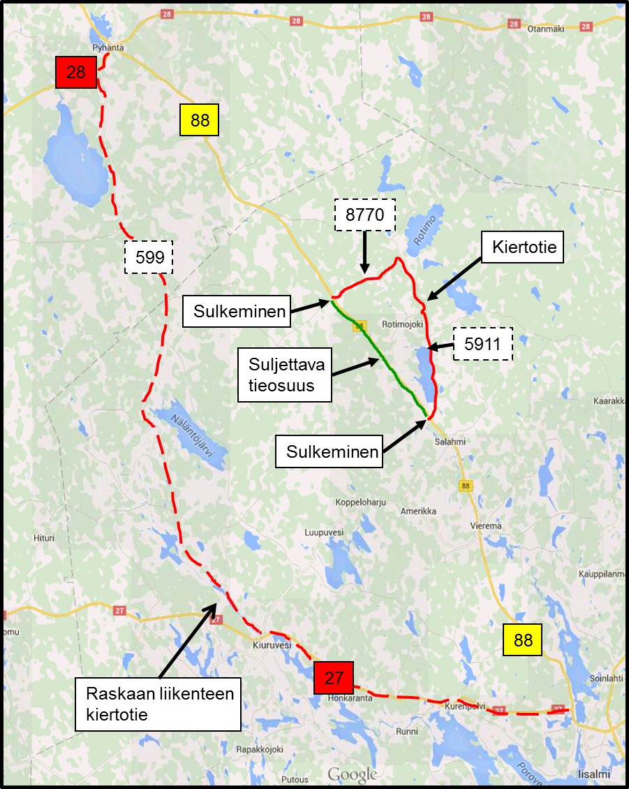 Vieremän maantietukikohdan osalta harjoitus aiheuttaa myös liikennejärjestelyitä. Kantatieltä numero 88 suljetaan tieosuus 4. lokakuuta kello 10:00 - 8. lokakuuta kello 24:00 väliseksi ajaksi. Henkilöautoliikenteelle ja raskaalle liikenteelle on harjoituksen aikana omat kiertotiet.