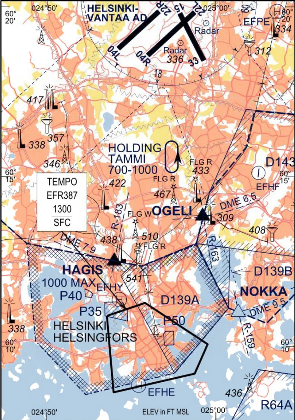 Keskustan alueelle luotu tilapäinen vaara-alue EFR387 yltää maan pinnalta 1300 jalan korkeuteen. Alue sijaitsee heti Helsinki-Vantaan lentoaseman lähestymisalueen alapuolella.