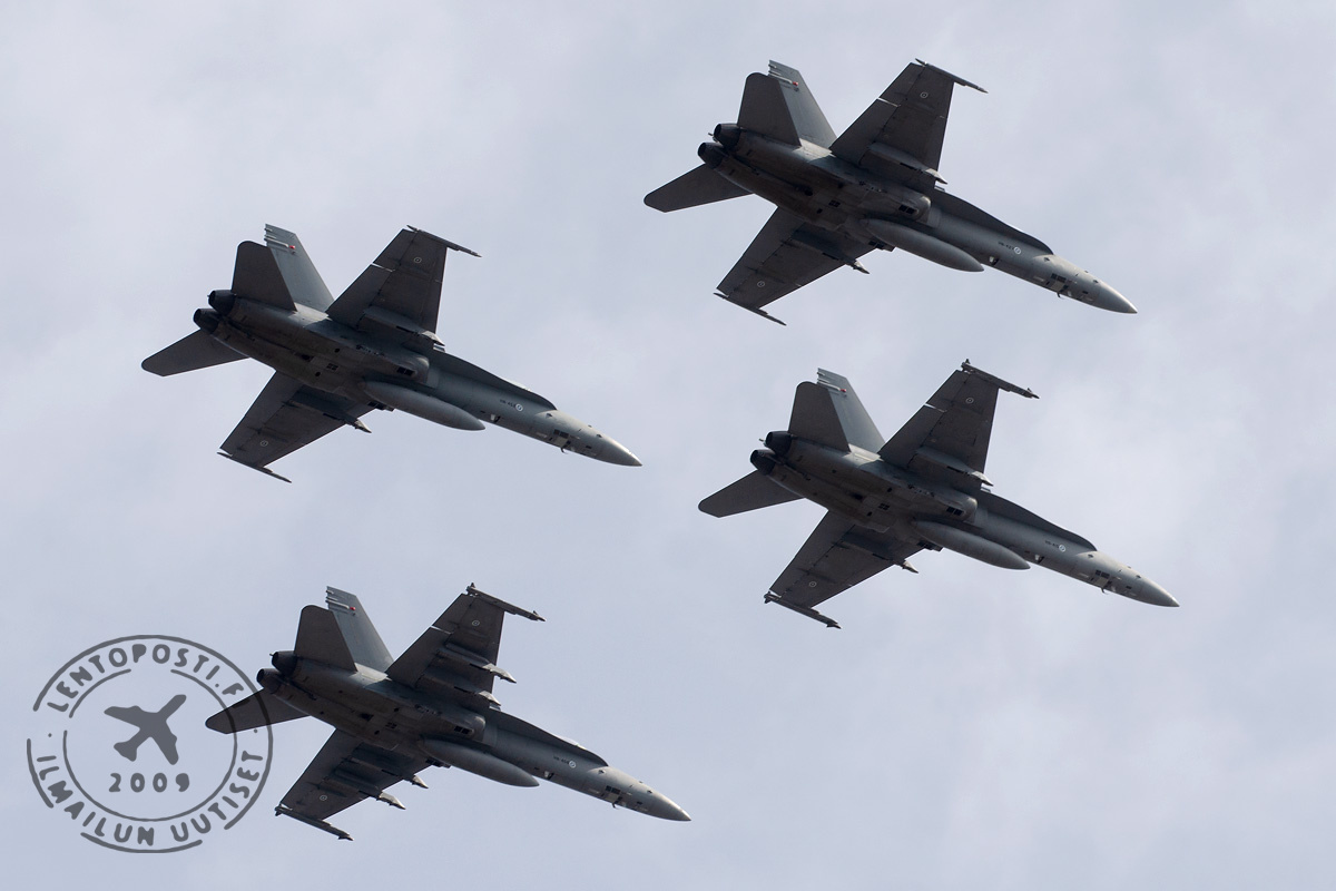 Karjalan lennosto lentää ylilennon F/A-18 Hornet -kalustolla Helsingissä Hietaniemen hautausmaan yli tasavallan presidentin seppeleenlaskutilaisuuden yhteydessä. Ylilennon ajankohta sovitetaan tilaisuuden kulkuun.