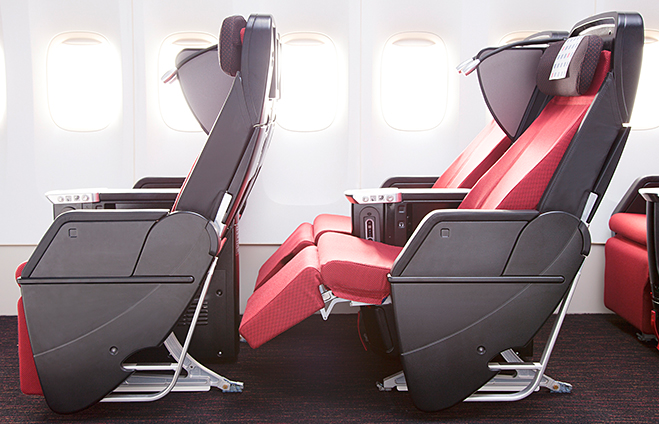 Premium ecomony -luokassa istuimet on sijoitettu 2-3-2 muotoon ja istuinväli 42 tuumaa eli noin 107 cm (selkänojasta seuraavan penkkirivin selkänojaan). Eturiveillä käytettävissä on 10.6 tuumainen IFE-järjestelmän näyttö ja muilla riveillä koko on 12,1 tuumaa.