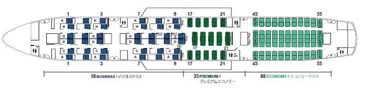 Matkustajapaikoista 38 on business-luokassa, 35 premium economy -luokassa ja 88 econony-luokassa. JAL tavoittelee lennoilleen entistä enemmän business-matkustajia sekä muita mukavuutta arvostavia.