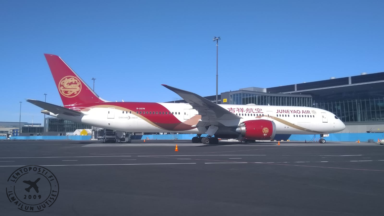 Juneyao Airin avauslennon Boeing 787-9 Dreamliner laskeutui Helsinki-Vantaalla varhain perjantaiaamuna 28. kesäkuuta. Juneyaon Air on nyt toinen Helsinki-Vantaalle operoiva kiinalainen lentoyhtiö. Reitti Helsinki-Vantaalle on Juneyao Airin ainoa mannertenvälinen lento. Avaus tuo merkittävää lisäkapasiteettia Helsinki-Shanghai välille ja yhteistyö Finnairin kanssa on jo käynnistetty.