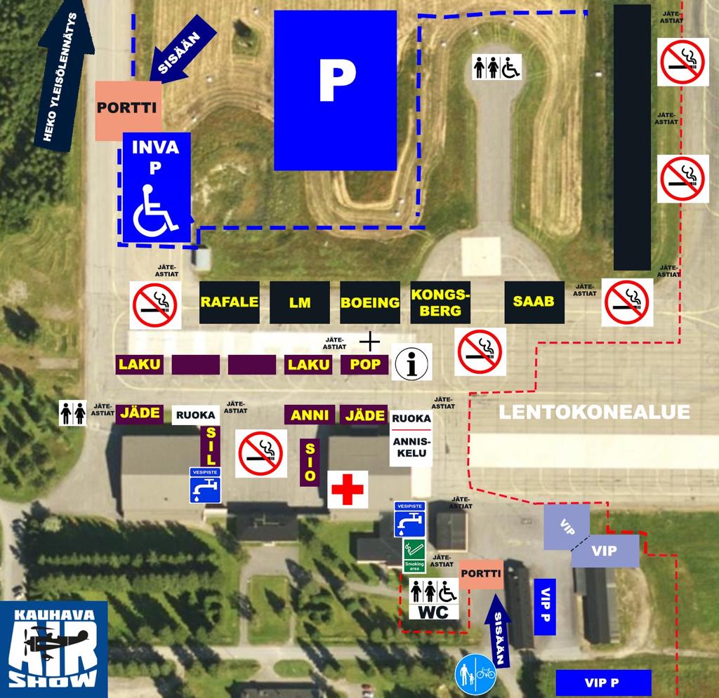 Yleisöä opastetaan tarvittaessa kuulutuksin ja lentonäytöshenkilöstön taholta siirtymään väljemmille alueille jos tungosta uhkaa syntyä. Kauhavan maanäyttelyalueella on yleisölle nähtävää ja koettavaa. Tarjolla on myös erilaisia ruokapisteitä.