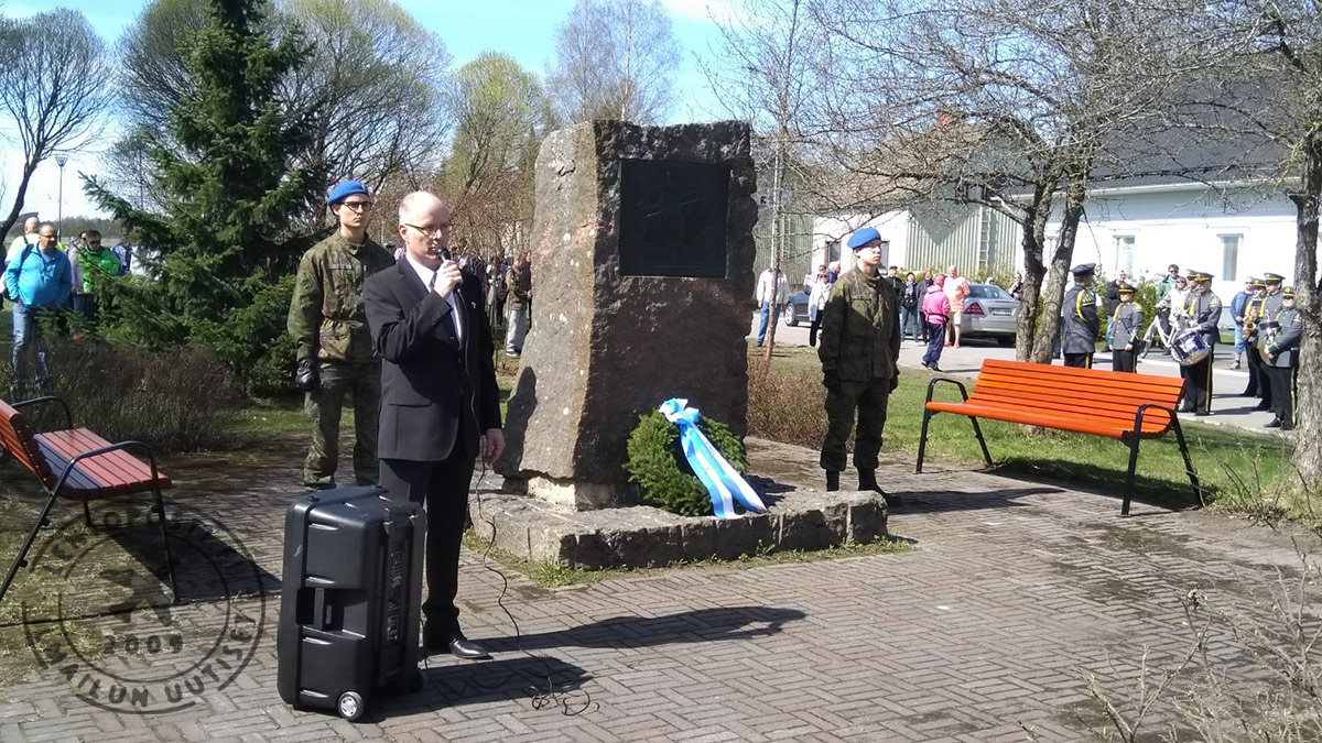 Lappeenrannan lentoaseman 100-vuotisjuhlapäivä käynnistyi seppeleen laskulla Lappeenrannan ilmailun muistomerkillä. Lentoaseman päällikkö Petteri Lehden pitämää juhlapuhetta oli kokoontunut kuulemaan arvioiden mukaan noin parisataa ihmistä.
