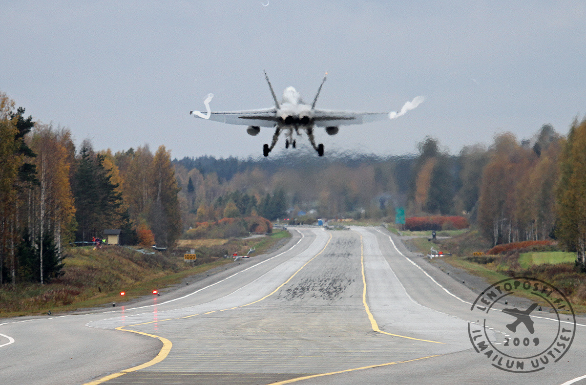 Käytössä on 2300-metrinen normaalia leveämpi osuus Lahdesta Mikkeliin johtavaa vitostietä eli ns. Lusin suora (yllä, klikkaa kuvat suuremmaksi). Harjoituksen ajaksi sen ympärille rakennetaan lentotoiminnan mahdollistava varustus. Tien varteen tuodaan mm. lennonjohto- ja sääasemakontit.