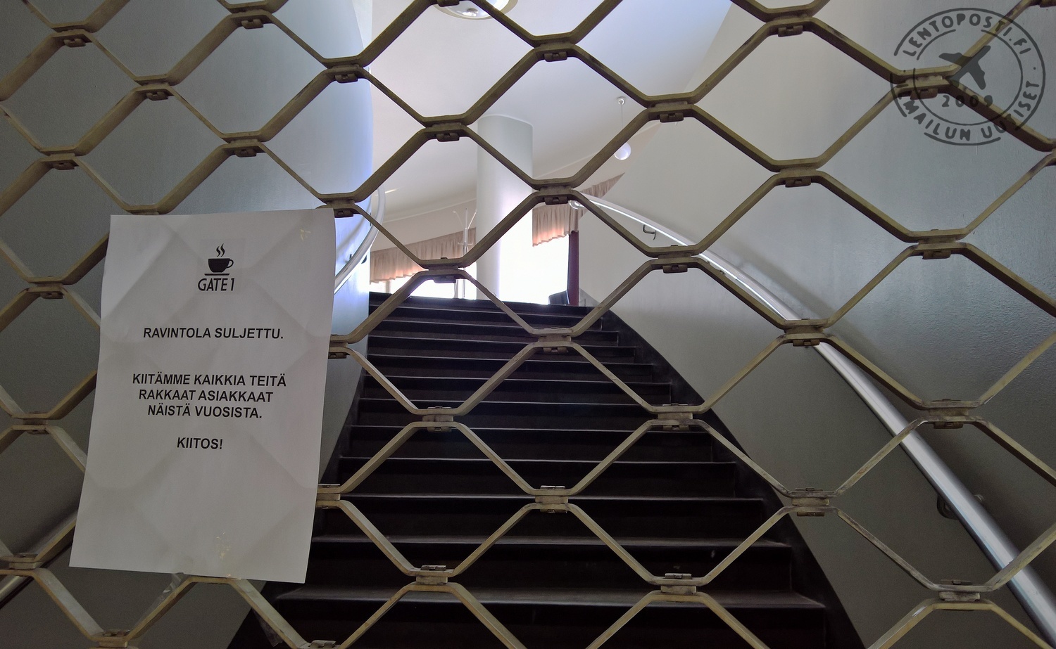 Vaikka Finavia on luopunut Helsinki-Malmista, lentotoimintaa on edelleen pyöritetty yhdistyksen voimin. Siksi lentäminen on jatkunut. Kentällä toimii edelleen myös runsaasti yrityksiä. Ravintola on vetänyt myös puoleensa muualta tulevia lounastajia. Huhtikuussa 2015 Gate 1 -ravintolan sunnuntaibrunssi valittiin pääkaupunkiseudun parhaaksi Helsingin Uutisten lukijaäänestyksessä. Alunperin valittavana oli 23 ravintolaa ja kahvilaa pääkaupunkiseudulta. Lisäksi myös omia ehdotuksia sai tehdä. Niitä tuli 28 kappaletta, yhtenä myös Malmin Gate 1. Se vei voiton täysin ylivoimaisesti. P Lentokentän ympäristössä on myös runsaasti muita lounasruokailuasiakkaista kilpailevia paikkoja. Yrittäjä teki ymmärrettävän johtopäätöksensä ravintolan heikentyneestä kannattavuudesta ja lopetti Gate 1:n toiminnan. Mahdollista toki on, että tilaan löydetään uusi yrittäjä. Joka tapauksessa upeat näkymät kenttäalueelle tarjonnut ravintola on nyt kiinni ja kalteriovi sulkee sinne johtavat portaat (otsikkokuvassa). Lukuisten ilmailijasukupolvien kantapaikka on hiljennyt. Gate 1 aloitti Helsinki-Malmilla toukokuussa 2013. Aiemmin tilassa oli vuodesta 2011 toiminut Finavian Hello Cafe -konsepti yrittäjävetoisena. Se lopetti saman vuoden helmikuussa ja ravintola oli jonkin aikaa tyhjillään. Hello Cafen edeltäjä, pitkään toiminut Hopealintu lopetti toimintansa syksyllä 2010. Ilmailijoiden Pyöreänä tunteman lentoasemarakennuksen toisessa kerroksessa on ollut ravintola koko sen historian ajan aina 30-luvulta alkaen. Aiemmin sen nimi on ollut myös Sinisiipi. T.T. Lue myös aiempia Lentoposti.fi -juttuja aiheesta:
