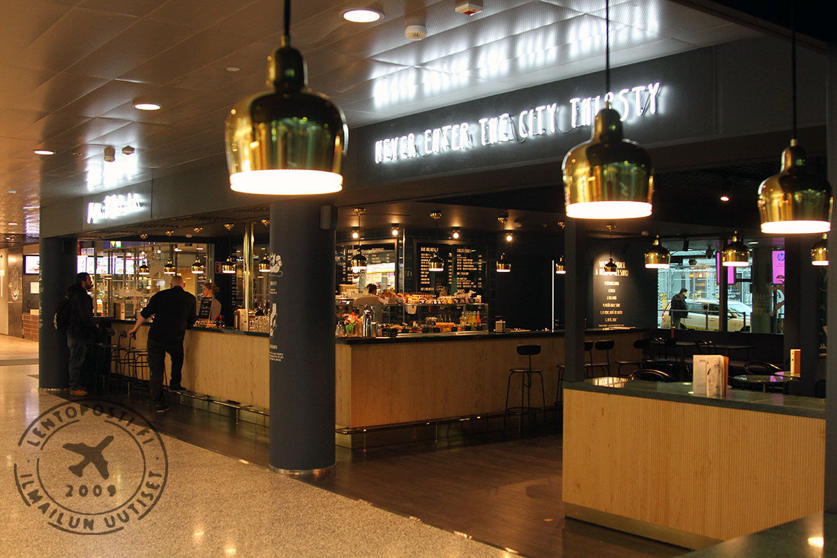 Veistoksen liukuportaiden toisella puolella ollut yhtä suuri, mutta kulmikkaampi sisarteos FIDS oli siirretty pois jo aiemmin. Massiivisten veistosten nimet ovat lennonjohtojärjestelmien lyhenteitä. Saapuvat 2A -aulaan on nyt avattu uuteen paikkaan siirtynyt apteekki, R-kioski, Bistrot-ravintola sekä Burger King -hampurilaispaikka. Lisäksi alueella on valuutanvaihto- ja taksipisteet sekä turistineuvonta. Hieman kauempana on Ritchie's Gourmet Hot Dogs. Alko yritti aikansa aulassa, mutta sulki lopulta ovensa kannattamattomana. Moi! Helsinki -pub tarjoaa nimensä mukaisesti paikan, jossa Helsinkiin tulijat voivat rentoutua ja tavata vastaanottajiaan. Tarjolla on pubin perusvalikoiman ohella kahvilatuotteita. Tilassa on Helsinki-aiheisia kuvia. Pubia hoitaa kansainvälinen matkustajille suunnattuja palveluja tuottava HMS Host, jolla on useita muitakin ravitsemusalan palvelupisteitä Helsinki-Vantaalla. Se mm. hoitaa franchising-periaatteella Burger King -hampurilaisravintoloita lentoasemalla. Moi! Helsinki palvelee kaikkia lentoasemalla vierailevia, koska se sijaitsee ennen turvatarkastusta ns. landsidella. Kehäradan uskotaan tuovat Helsinki-Vantaalle yhä enemmän myös muita asiakkaita kuin lentomatkustajia. Kaikille avoimelta alueelta löytyy mm. 24/7 auki oleva Alepa-elintarvikemyymälä. T.T. Moi! Helsinki on auki maanantaista perjantaihin kello 06.00 - 01.00. Lauantain aukioloajat ovat 09.00 - 01.00. Lue myös aiempia Lentoposti.fi -juttuja Helsinki-Vantaan palveluista: