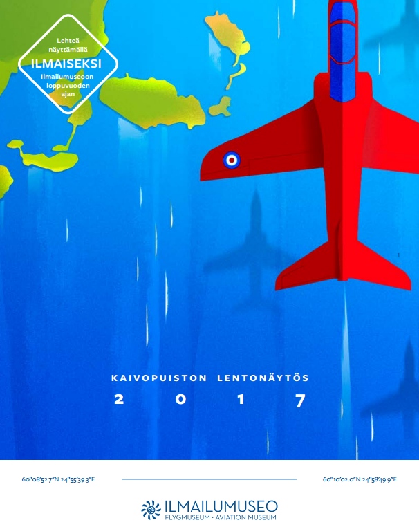Mukana on myös päivitetty kartta näytösjärjestelyistä Helsingin kantakaupungin eteläkärjessä. Siitä ilmenevät aikataulun ohella mm. veneilyltä rajoitetut alueet. Mukana on muistutus kuulon suojaamisesta sotilassuihkukoneiden esitysten aikana. T.T. Kaivopuiston lentonäytöslehti (PDF)