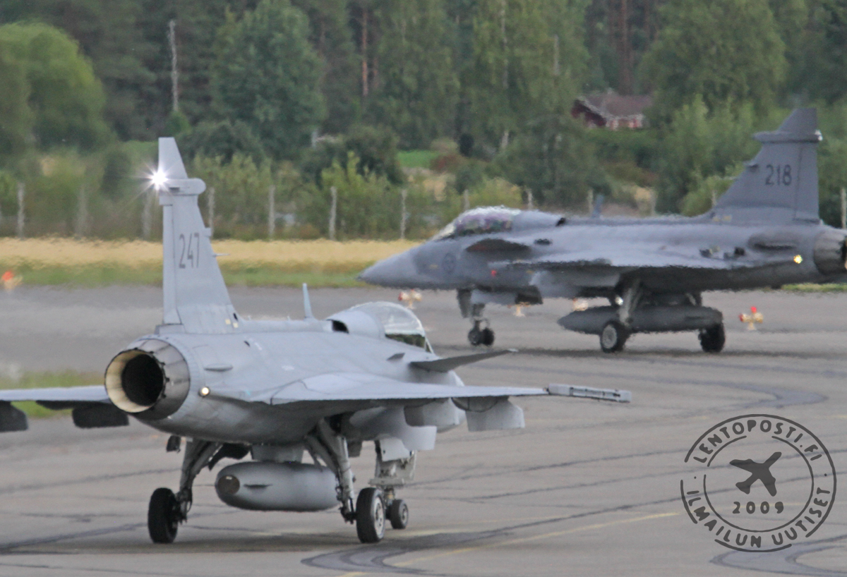 Ruotsin ilmavoimien Saab 39C Gripenit saapuvat Helsinki-Vantaalle Såtenäsistä Skaraborgin F7-lennostosta, joka sijaitsee Etelä-Ruotsissa. Esityslentäjinä toimivat majurit Peter Fällen ja Henrik Björling, joista molemmat ovat esiintyneet Suomessa myös aikaisemmin. "Kaivari 21 -näytöksessä esityslennon lentää Fällen ja Björling toimii varaesityslentäjänä ja valvojana. He vuorottelevat esityslentäjänä ja valvojana eri näytöksissä. Kaivopuiston lentonäytöksessä esiintyvä kone antaa hyvän kuvan suomalaiselle yleisölle Gripenin liikehtimiskyvystä ohjaajan käskyttäessä sitä katsojien edessä”, jatkaa Jouppi.