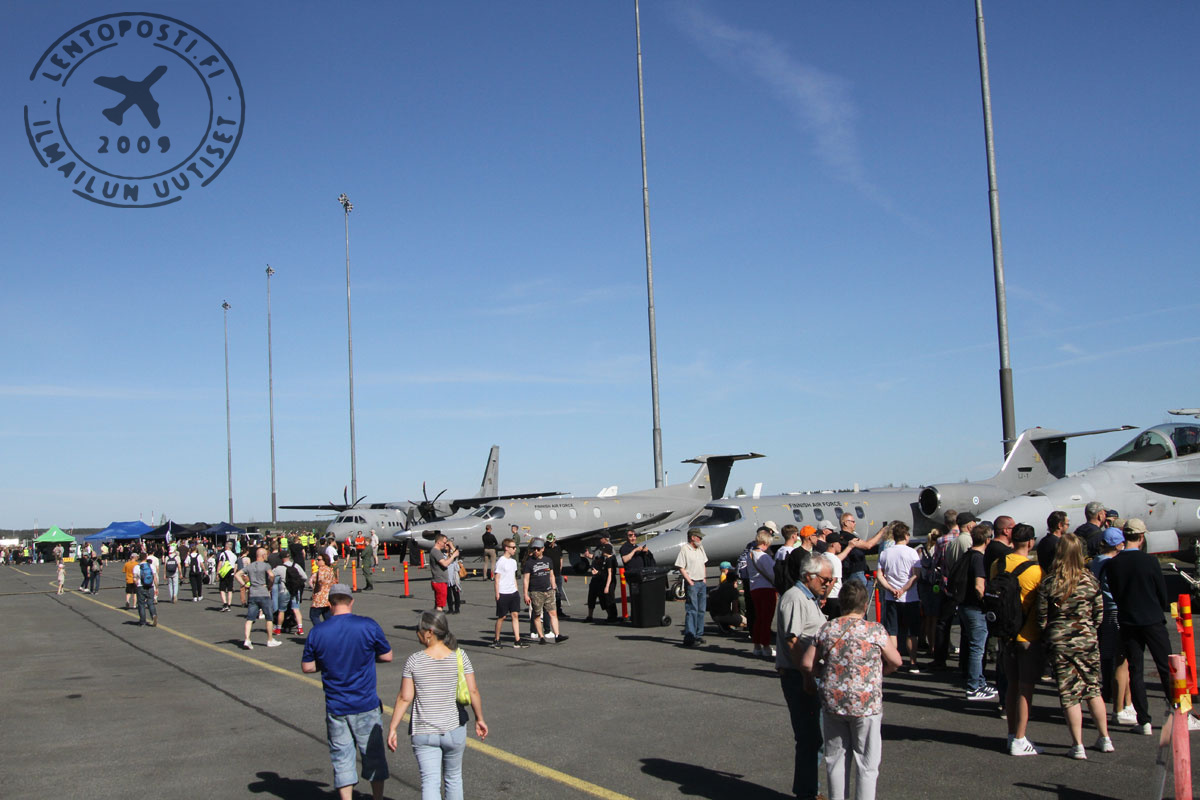 Taivaalla nähdään päivän aikana F/A-18 Hornet -monitoimihävittäjän, Hawk-suihkuharjoituskoneen ja Pilatus-yhteyskoneen sekä Ilmavoimien virallisen taitolento-osaston Midnight Hawksin esityslennot. Historian siipien havinaa taivaalla tarjoilevat Woikosken Saab 91D Safir -koneet.