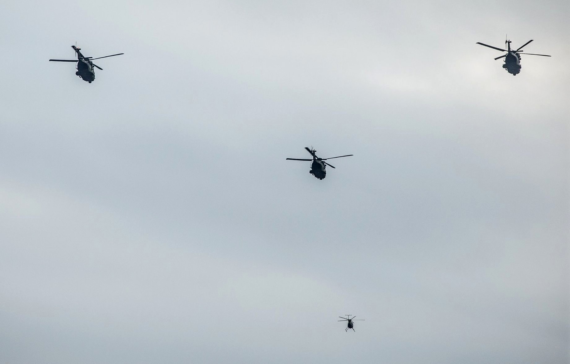 Kun Utin jääkärirykmentin erikoisjoukkojen osasto maastoskoottereineen ja RG-32-partioajoneuvoineen tulee paraatin vastaanottajien tasalle, kuusi NH90-kuljetuskopteria ja neljä Hughes MD500 -kevythelikopteria nähdään ylilennolla. T.T.