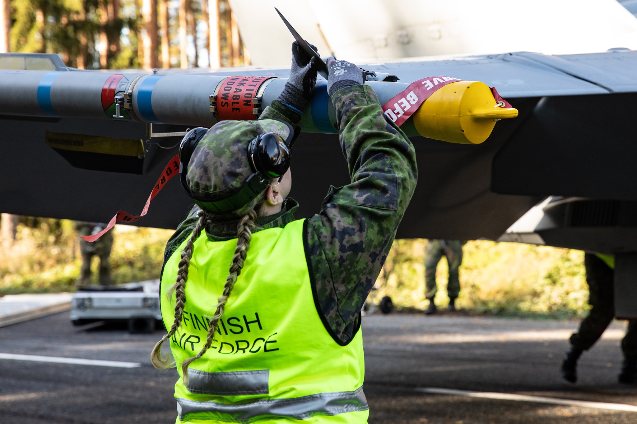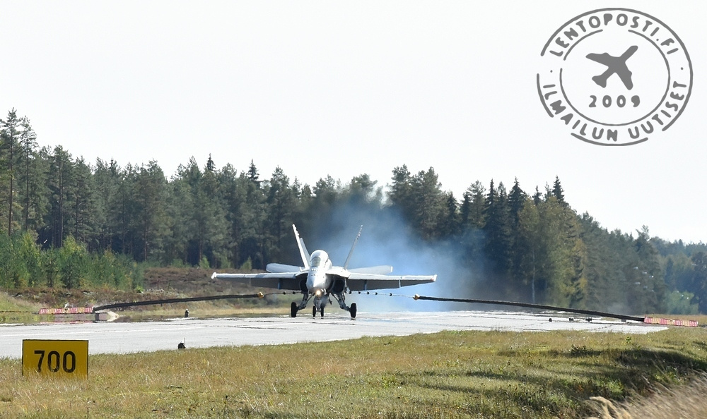 Kiitotieksi merkityn alueen pituus on noin 2345 metriä ja se on 20 metriä leveä. Virttaan suora on kuitenkin rakennettu Saab 35 Draken - ja MiG-21-hävittäjien aikakaudella, joten sen kokonaispituus on noin 3,5 km. Tukialuskoneeksi rakennetulle Hornetille riittää paljon lyhyempi kiitotie ilman pysäytysvaijeriakin. Baana 21 -harjoituksen ajan on voimassa tilapäinen rajoitusalue EFR503, joka yltää maan pinnalta lentopinnalle 95 saakka. Alueen sisäpuolelle jäävät mm. Vampulan ja Oripään lentopaikat. Dronejen lennättäminen koko rajoitusalueella on kielletty. Harjoitus päättyy torstaina, joka on lentotoiminnan suhteen jo varapäivä. Tie aukeaa kello 21 mennessä. Teksti Tero Tuominen, kuvat Tero Tuominen ja Ilmavoimat Juttua muokattu 20.40: lisätty Ilmavoimien kuva Hornetin aseistamisesta Lue myös: