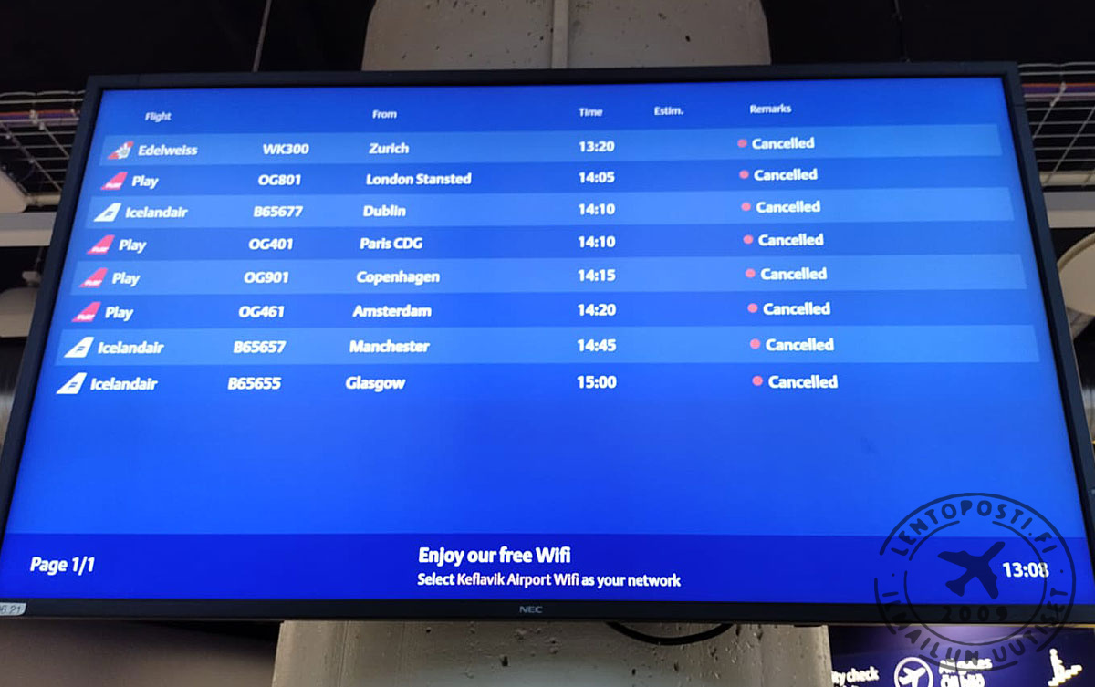 Icelandair ja Play ovat käytännössä peruneet kaikki lentonsa keskiviikkoiltapäivältä 5. helmikuuta ja torstaiaamupäivältä 6. helmikuuta. Keskiviikkoaamuna Eurooppaan lähteneet lennot palaavat Islantiin vasta torstai-iltapäivällä.