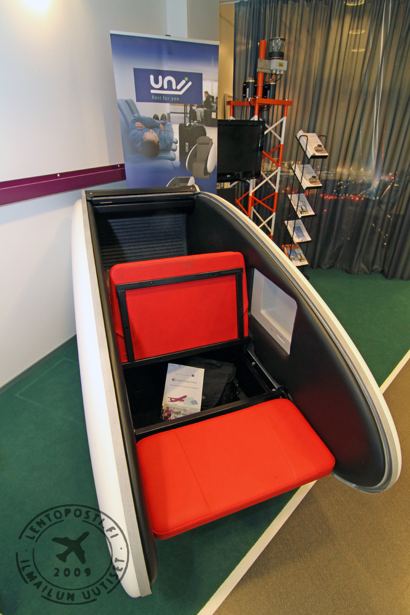 Istuimesta löytyy pistorasia esimerkiksi kännykän tai kannettavan lataamiseen. Palvelun on suunnitellut ja valmistanut suomalainen Short Rest Solutions Oy. Uusi lepopaikka sijaitsee non-Schengen-alueen portin 38 läheisyydessä. Palvelu on nykyisin maksullinen ja hinta on 9 euroa tunnilta, joka on myös miniveloitus. Opastusta antaa paikalla toimiva palveluemäntä jolle tuolien vuokrakin maksetaan. Palveluprosessia kehitetään edelleen. Valmistajalla on jo toimivat komponentit tuoliin integroitavaan näyttöön ja maksupäätteeseen. Portin 38 vuokratuolien lisäksi kaikkien matkustajien lyhyeen koekäyttöön on tarjolla yksittäinen Uni-tuoli portilla 18. Myöhemmin sekin muuttuu maksulliseksi. "Tarjoamme matkustajille alkuvaiheessa mahdollisuuden tutustua tuotteeseemme lentoasemalla myös ilman maksua", kertoo Short Rest Solutions Oy:n toimitusjohtaja Jussi Piispanen GoSleep-uniputkia testattiin kentällä jo vuonna 2013 lentoaseman Lentomatkustajan levähdyspaikka -pilottihankkeen yhteydessä.