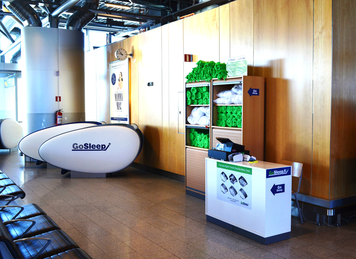 "Uskon, että palvelulle on täällä aidosti kysyntää." Vuonna 2014 kansainvälinen lentoasemien lepo- ja nukkumismahdollisuuksia arvioiva SleepingInAirports.com-sivusto valitsi Helsinki-Vantaan maailman kolmanneksi uniystävällisimmäksi lentoasemaksi. GoSleep-uniputket ovat uusin lisä innovatiivisen lentoaseman palvelupalettiin. GoSleep-uniputki on suomalainen innovaatio, joka tarjoaa matkustajalle rauhaa ja yksityisyyttä hektisen lentoaseman vilskeessä. Se on ergonominen, sängyksi muuntuva istuin, jossa matkustaja voi levätä muiden katseilta ja hälyltä suojassa.